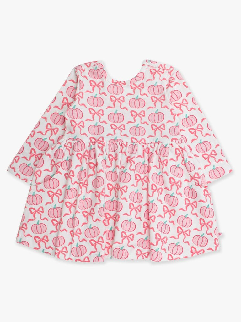 Pink Fairytale Pumpkins Knit Long Sleeve Twirl Dress
